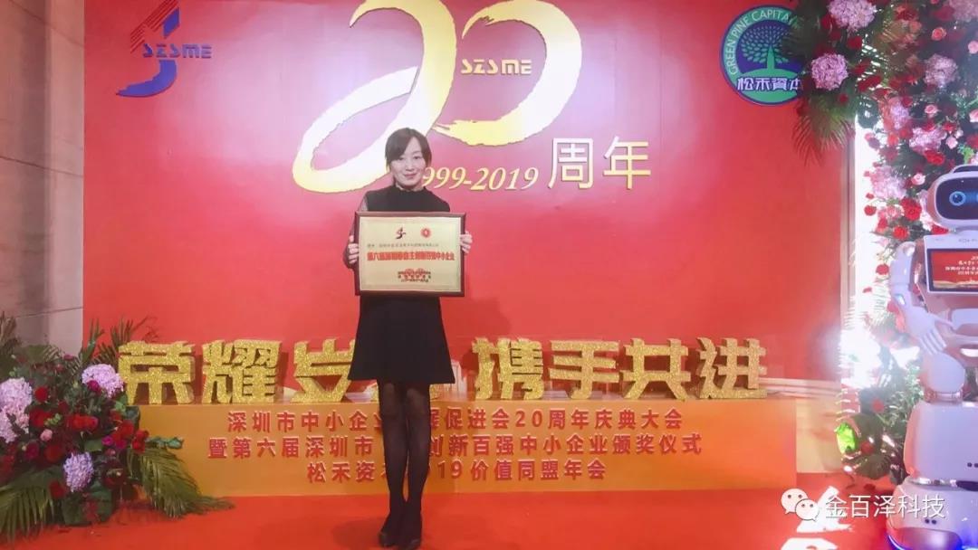 深圳创新百强评选活动,由市科创委、市中小企业服务局、中国中小企业协会指导,市中小企业发展促进会、深圳特区报社联合举办,自2006年开始举办,两年一届,迄今为止共举办6届,参评企业达3万多家,现已成为深圳最具影响力的品牌活动之一。在本届活动评选中,金百泽以综合实力,尤其是突出的技术研发能力和专利能力从近3000家报名参选的企业中脱颖而出,荣获“自主创新百强中小企业”荣誉称号,成为深圳200多万家中小企业的优秀代表。