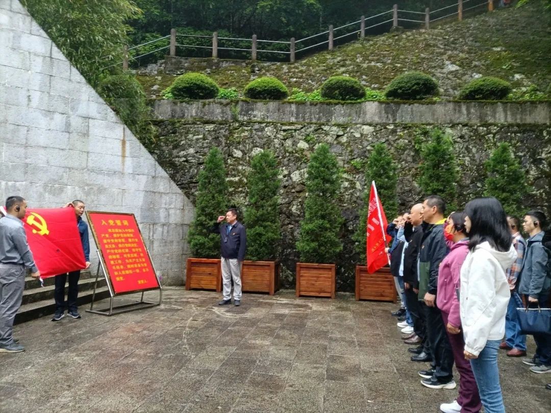 大家怀着沉重心情悼念先烈后,在赵熙书记的带领下,重温入党誓词。铮铮誓言回荡陵园,初心不改永远向党。